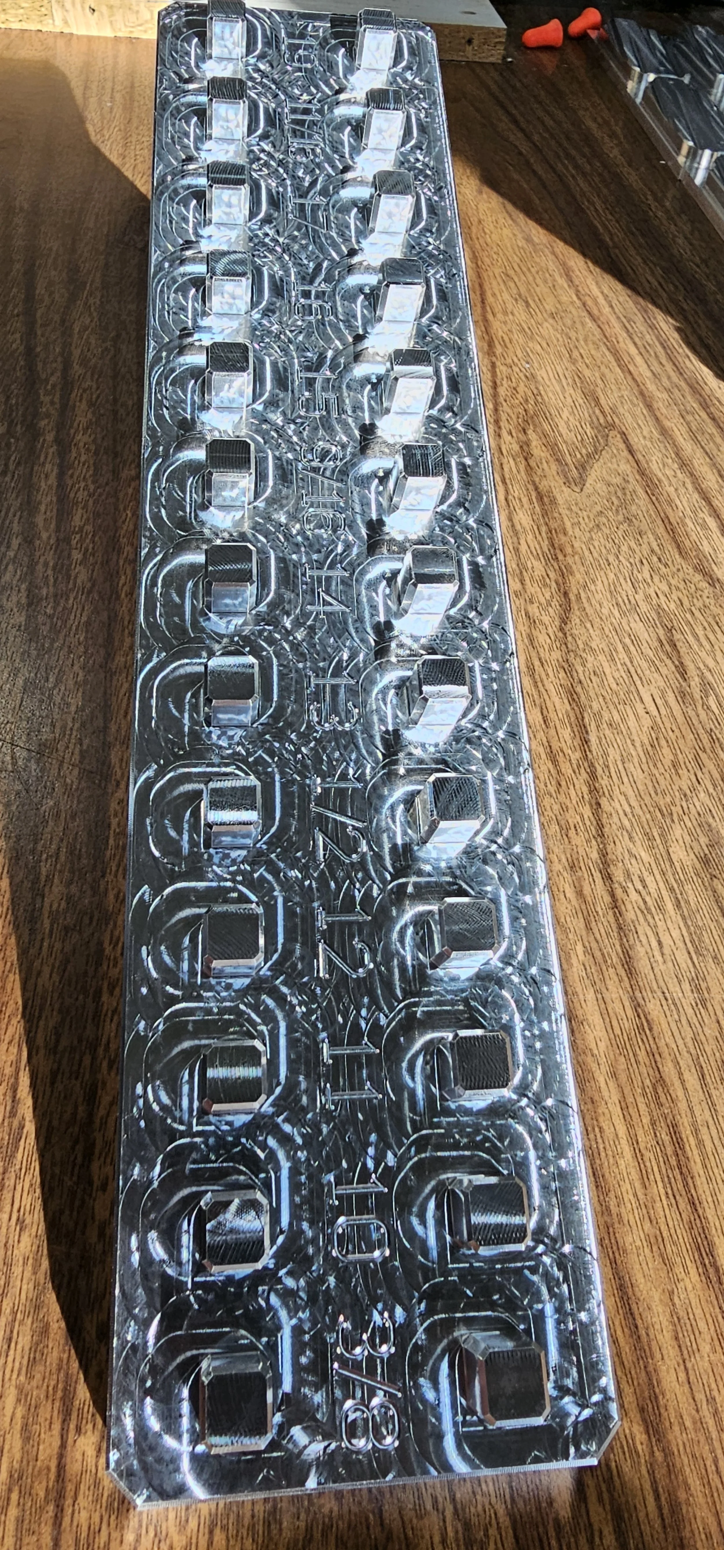 ORDER Categories: All WRENCH ORGANIZATION TORQUE WRENCH ORGANIZATION EXTENSION ORGANIZATION SOCKET ORGANIZATION All | WRENCH ORGANIZATION | TORQUE WRENCH ORGANIZATION | EXTENSION ORGANIZATION | SOCKET ORGANIZATION | Blue Point 3/8 Twist Socket Organizer SAE& Metric $40.00 Sold out 10MM Single Tray 3/8 $26.00 Sold out 10MM Single Tray 1/4" $26.00 Sold out VIM Tools DTPM100 $36.00 Sold out 20 PC Wrench Organizer ( 2 PC ) $36.00 Sold out 4 x 10 1/4 Drive Organizer $35.00 1/4 - 2 Row Socket Organizer $26.00 1/4 - 3 ROW SOCKET ORGANIZER $28.00 1/4 - 4 ROW SOCKET ORGANIZER $32.00 3/8 - 2 Row SAE $36.00 3/8 - 2 Row ( METRIC & SAE ) ORGANIZER $60.00 3/8 - 3 Row 8-22MM Socket Organizer $50.00 Sold out 3/8" - 3 Row 8 - 24 (METRIC) SOCKET ORGANIZER $55.00 3/8 - 3 ROW ( SAE ) SOCKET ORGANIZER $45.00 3/8 - 3 ROW 6-20MM SOCKET ORGANIZER $45.00 3/8 - 3 ROW ( METRIC & SAE ) SOCKET ORGANIZER $85.00 1/2" - 2 ROW ( SAE ) SOCKET ORGANIZER $55.00 1/2" 2 Row ( SAE ) with 1-3/16" ( 15pc ) $55.00 Sold out 1/2" SAE 1-5/16 - 1-5/8 $42.00 1/2" - 2 ROW 10-27 ( SKIPS 26 ) Socket Organizer $60.00 1/2" 28 - 36 Metric Socket Organizer $45.00 Blue Point BLPTHC87 Organizer $80.00 Cornwell CBSMTH62S - 62 Piece Hex & Star Bit Organizer $55.00 Sold out 6" x 6" 1/4 & 3/8 Billet Aluminum Organizer $38.00 Sold out 6" x 6" 3/8 Billet Aluminum Organizer $32.00 Sold out 6" x 6" Multi Billet Aluminum Organizer $32.00 Sold out Billet Aluminum organizer for 204fihc $40.00 Sold out 1/4 Extenion Tray for Icon extensions $35.00 Sold out 1/4 Extension Tray SNAP-ON $36.00 1/4 & 3/8 Extension Tray SNAP-ON $60.00 3/8 Extension Tray SNAP-ON $36.00 3/8 Extension Tray for Icon $36.00 Sold out 3/8 Extension Tray Matco 5pc $36.00 Sold out 1/2" Extension Tray SNAP-ON $38.00 Digital Torque Wrench Tray (2Pc) $80.00 Digital Torque Wrench Tray (3 Pc) $140.00 Low Profile Socket Organizer for Snap On sockets $36.00 3/8 Low Profile $46.00 Sold out Tap Socket Holder $32.00 Sold out
