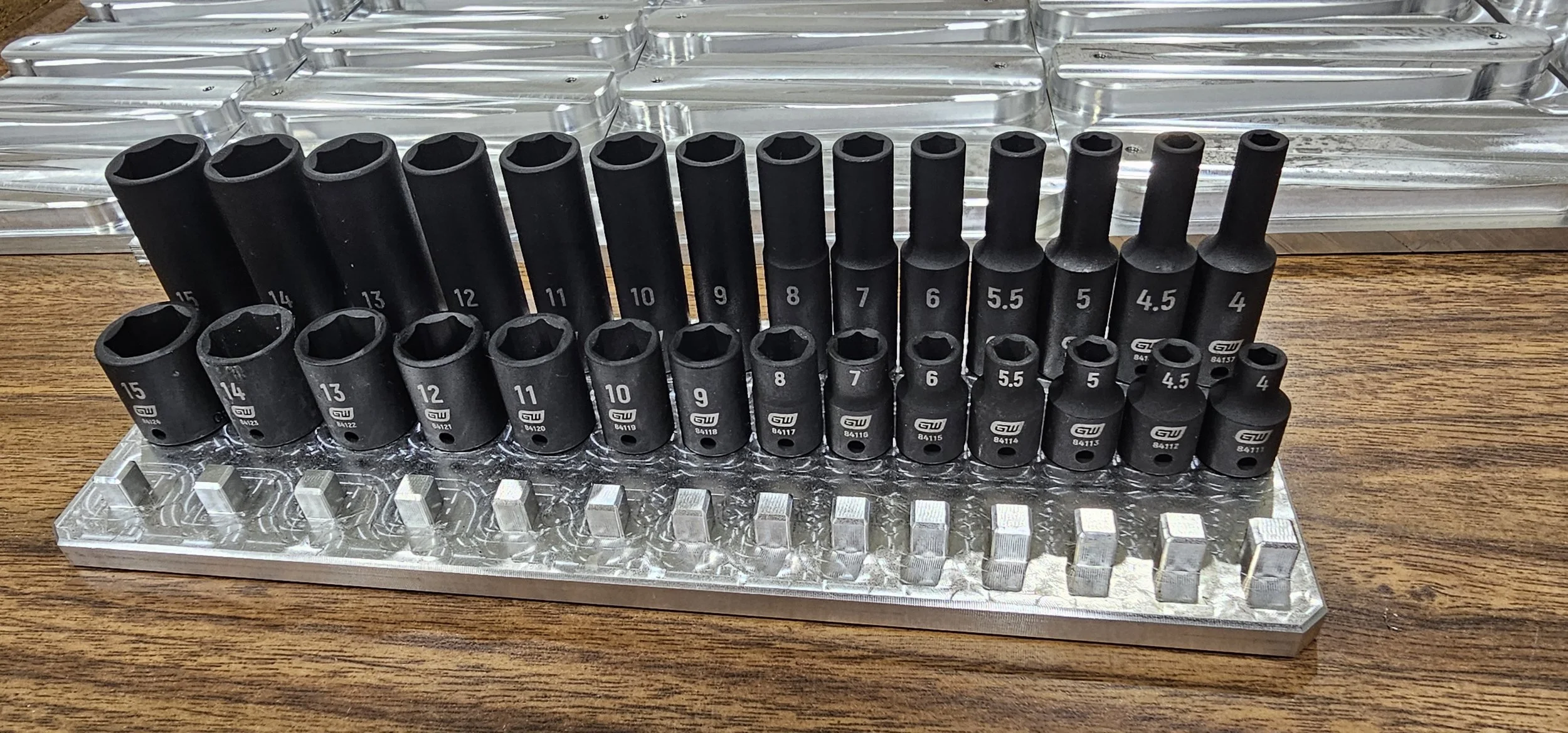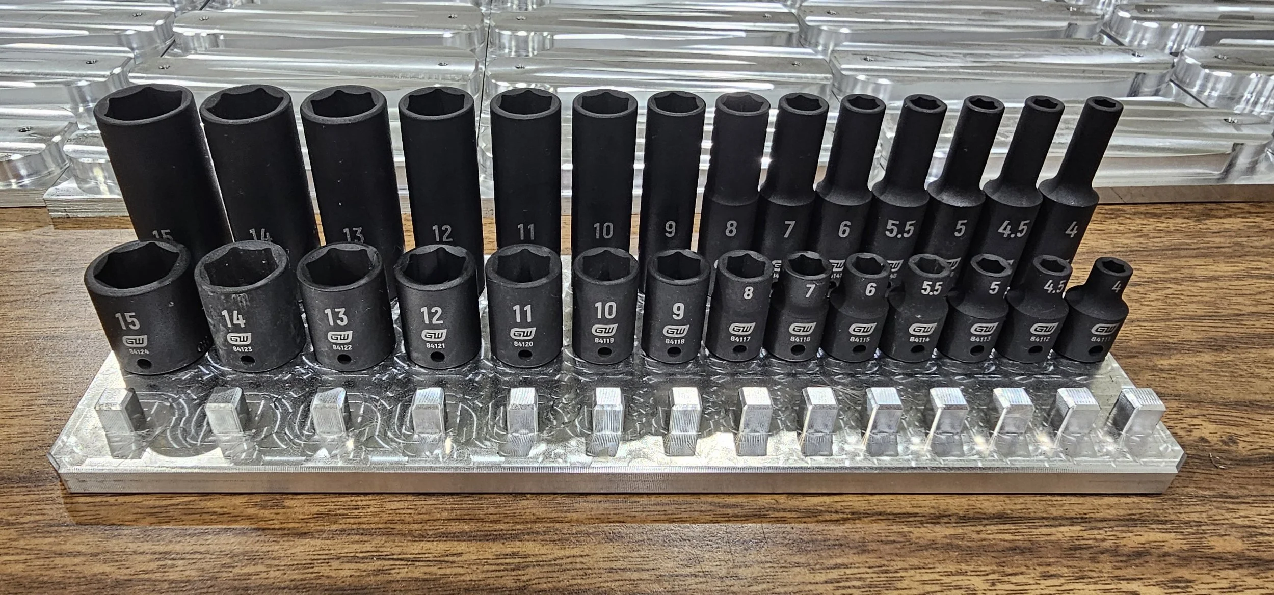 ORDER Categories: All WRENCH ORGANIZATION TORQUE WRENCH ORGANIZATION EXTENSION ORGANIZATION SOCKET ORGANIZATION All | WRENCH ORGANIZATION | TORQUE WRENCH ORGANIZATION | EXTENSION ORGANIZATION | SOCKET ORGANIZATION | 3/8 Locking Extension Tray $36.00 20 PC Wrench Organizer ( 2 PC ) $36.00 Sold out 4 x 10 1/4 Drive Organizer $35.00 1/4 - 2 ROW SOCKET ORGANIZER $27.00 Sold out 1/4 - 3 ROW SOCKET ORGANIZER $29.00 1/4 - 4 ROW SOCKET ORGANIZER $33.00 Sold out 3/8 - 2 Row SAE - 1/4-1" SOCKET ORGANIZER $36.00 3/8" - 3 Row 8 - 24 (METRIC) SOCKET ORGANIZER $56.00 3/8 - 3 ROW SAE 1/4" - 1" SOCKET ORGANIZER $46.00 3/8 - 3 ROW 6-20MM SOCKET ORGANIZER $46.00 1/2" - 2 ROW SAE - 3/8" - 1-1/4" SOCKET ORGANIZER $56.00 1/2" - 2 Row SAE 3/8" - 1-1/4" with 1-3/16" ( 15pc ) $56.00 1/2" SAE 1-5/16 - 1-5/8 $42.00 1/2" - 2 ROW - 10-27 ( SKIPS 26 ) SOCKET ORGANIZER $60.00 1/2" - 28 - 36 Metric Socket Organizer $46.00 Blue Point BLPTHC87 Organizer $82.00 Billet Aluminum organizer for 204fihc $40.00 Sold out 1/4 Extension Tray - SNAP-ON $36.00 1/4 & 3/8 Extension Tray - SNAP-ON $62.00 3/8 Extension Tray SNAP-ON $36.00 Sold out 1/2" Extension Tray - SNAP-ON $38.00 Digital Torque Wrench Tray (2Pc) $85.00 Sold out Digital Torque Wrench Tray (3 Pc) $145.00